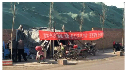 居民在水泥廠門口搭建簡易棚,日夜監控