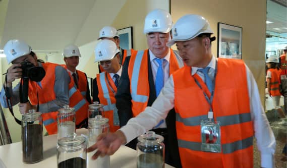 參加活動期間,邢大使與額爾登巴特總理簡短寒暄,還參觀了水泥廠車間等設施,并慰問了現場的中國工友們。