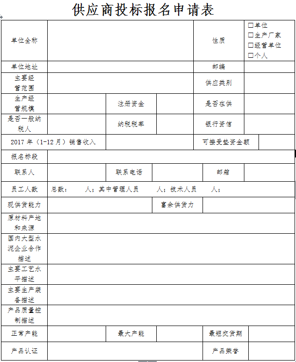 附件:貴州西南水泥2018年度輔材備件集中招(議)標公告(供應商投標報名申請表)