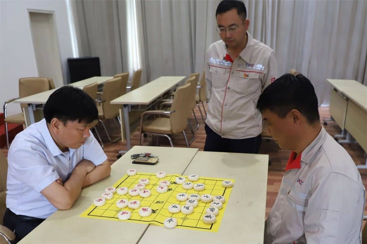 象棋比賽在公司禮堂舉辦。在沒(méi)有硝煙的博弈戰(zhàn)場(chǎng)上,參賽選手們鎮(zhèn)定自若,像指揮千軍萬(wàn)馬的將軍那樣運(yùn)籌帷幄,指揮著棋盤(pán)上的棋子。楚河漢界,誰(shuí)主沉浮!緊張的比賽現(xiàn)場(chǎng)似乎能讓觀(guān)棋者想象到戰(zhàn)車(chē)滾滾、馬蹄聲聲、炮聲隆隆的古戰(zhàn)爭(zhēng)場(chǎng)面!