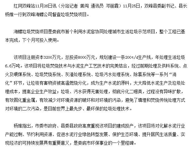 雙峰海螺+垃圾焚燒,大量有關(guān)稱贊該項目的報道