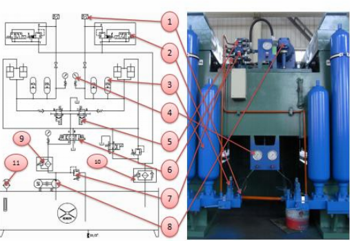 4、采用恒壓恒輥縫控制的液壓系統(tǒng) PLC 控制,提高運(yùn)行穩(wěn)定性;改造輥縫調(diào)整裝置,通過合理調(diào)整,,穩(wěn)定壓力,輥縫位移在5mm以內(nèi);使輥?zhàn)舆\(yùn)行更加平穩(wěn),兩臺(tái)主電動(dòng)機(jī)電流達(dá)到額定電流 80-90% ,在額定電流范圍內(nèi)作小幅度的擺動(dòng), 這標(biāo)志輥壓機(jī)對物料輸入了粉碎所需的能量;消除由于回料細(xì)粉過多產(chǎn)生的輥?zhàn)庸舱瘳F(xiàn)象(專利技術(shù))。