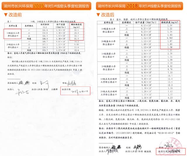 通過以上幾條技術改造和措施,改造前后的粉塵排放變化,用環保部門的季度檢測報告和國控在線監測與大家共享改造成果:
