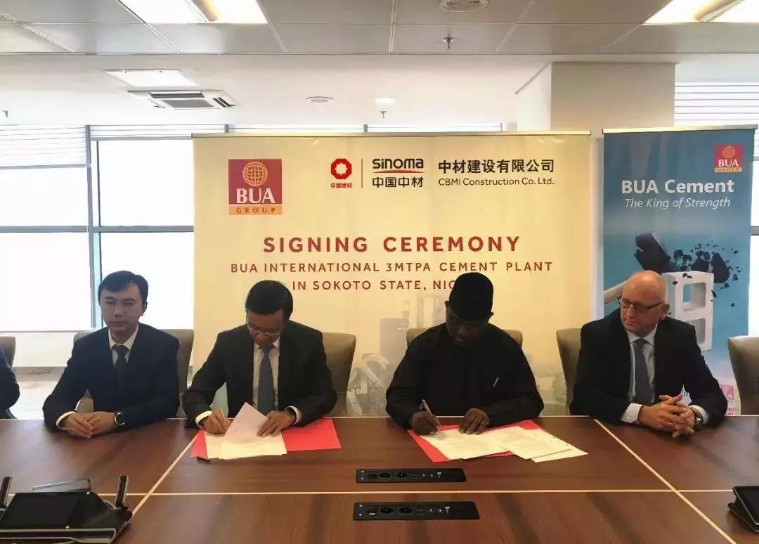 BUA集團參加簽約儀式的高管還有:執(zhí)行董事Mr. KABIRU RABIU,首席法務官Mr.ALIYU,貿(mào)易融資負責人DEBO, CCNN水泥廠總經(jīng)理Mr. YUSUF BINJI等;中材建設有限公司總經(jīng)理助理馬愛國、市場部部長楊智,項目經(jīng)理田寶、市場部助理田寒、技術經(jīng)理周亞斌、工藝主任工程師張慶民、市場部商務經(jīng)理尹雨杰等陪同參加了簽約儀式。