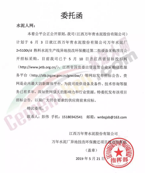 江西萬年青水泥股份有限公司萬年水泥廠2×5100t/d熟料水泥生產線異地技改環保搬遷第二批設備采購項目進行國內公開招標。有關事項公告如下: