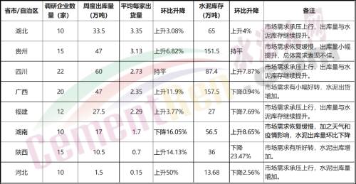 相關數據顯示,近一周以來,隨著部分區域疫情放緩,解封的區域增多,部分區域水泥周出庫量雖有增加但仍難達到預期。四川、貴州、廣西、湖北、福建、湖南、陜西、河北等8個省自治區114家企業周出庫量為244萬噸,平均一家企業一周出貨量僅為2.14萬噸。其中湖南省因市場需求恢復緩慢,加之天氣和疫情影響,水泥出庫量環比下降16.05%,17家企業周平均出貨量僅為1.7萬噸,庫存周環比上漲8.65%。相比此前一家企業一天出庫2萬噸,如今一周不足2萬噸的出庫量,相比每日的支出,核算利潤額著實是“空歡喜”一場。