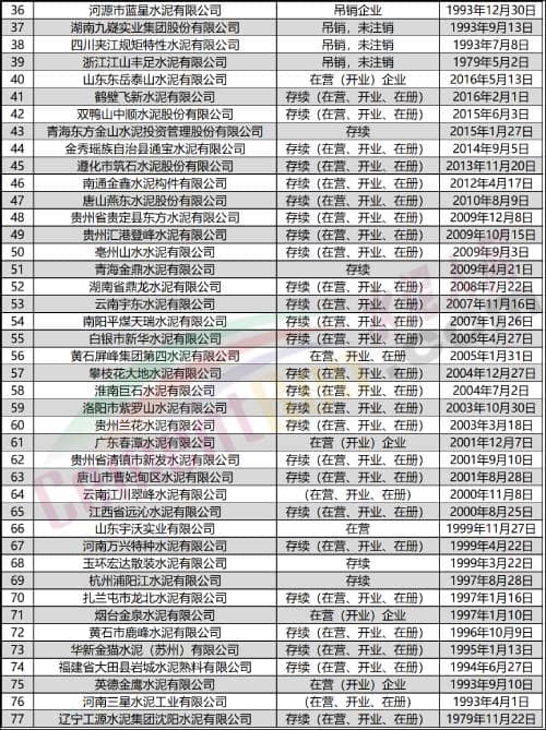 據水泥人網不完全統計,截止目前被列入嚴重違法失信企業名單中包括70家水泥行業企業,而被列入經營異常的水泥廠也達到77家,被行政處罰的達99家,共計246家水泥廠。且有部分企業連續多年因被列入經營異常名錄屆滿3年仍未履行相關義務而持續被列入嚴重違法失信企業名單。