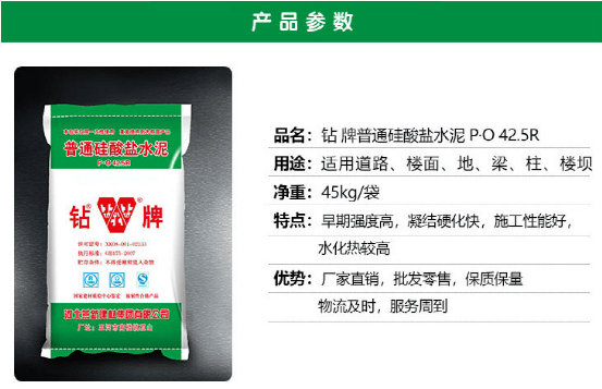 據查詢,鉆牌水泥官網報價顯示,P.S.A32.5R水泥凈含量40kg/袋,P.O42.5R水泥凈重45kg/袋。
