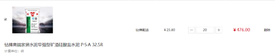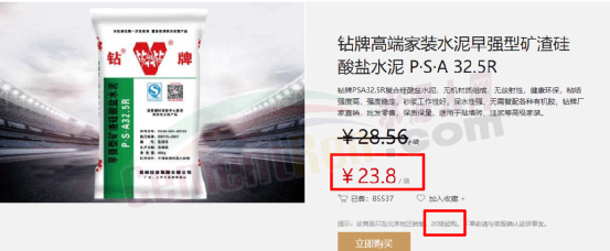 20袋P.S.A32.5R水泥合計476元,照此計算一噸P.S.A32.5水泥報價為595元。一經銷商表示,現在大家都習慣了這種“減肥水泥”。部分裝修施工人員鉆空子以“20包一噸”計算。水泥合格,但是消費者支付的材料單價卻“上漲”了。施工所需要的水泥也有可能增加了。原來用一噸水泥可以完成的施工,現在至少多五包才夠。這中間如有偷工減料發生,極有可能危及建筑物的安全,或出現配比不合格導致的“豆腐渣工程”。