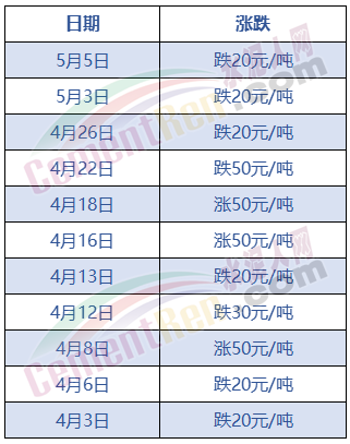 以鄭州市為例,近一個(gè)月以來(lái),水泥價(jià)格分別于4月8日、16日、18日三輪上調(diào),累計(jì)漲價(jià)150元/噸,同期,連續(xù)八輪下跌,累計(jì)跌價(jià)達(dá)200元/噸。
