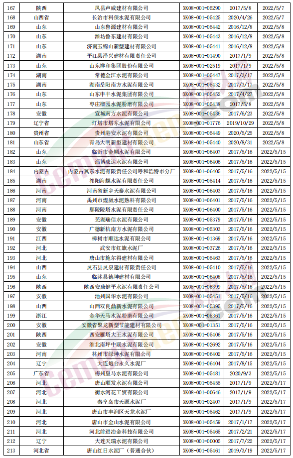 據查詢,河北、山東、廣東、浙江、福建、貴州六省市場監管局省級發證水泥行業生產許可證中,有15家企業生產許可證將于今年內到期。