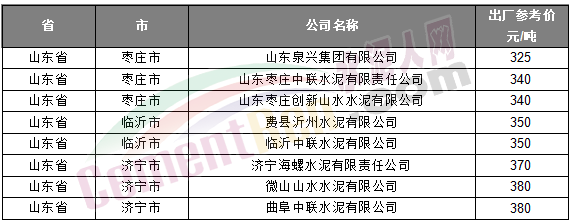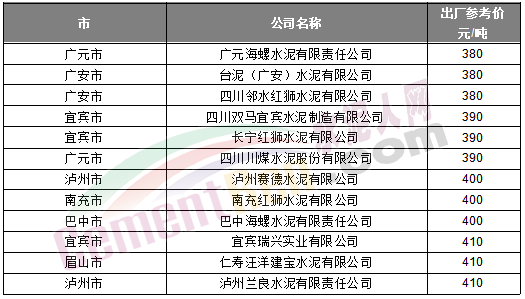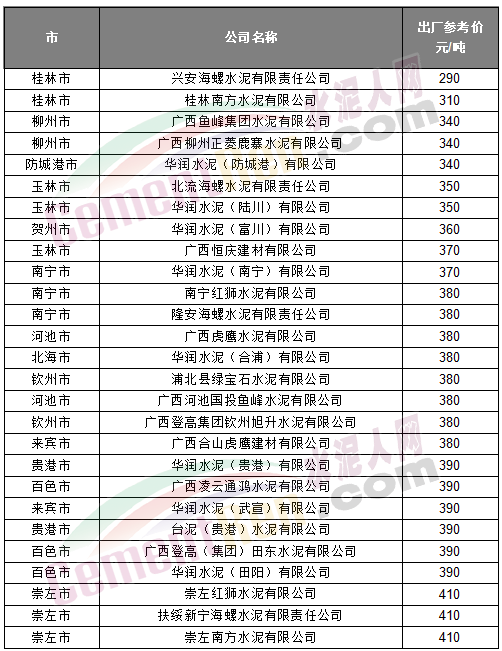 * 上述出廠參考價來源水泥人網信息中心人工采集,僅供參考。如與實際成交不符請以實際成交價格為準。