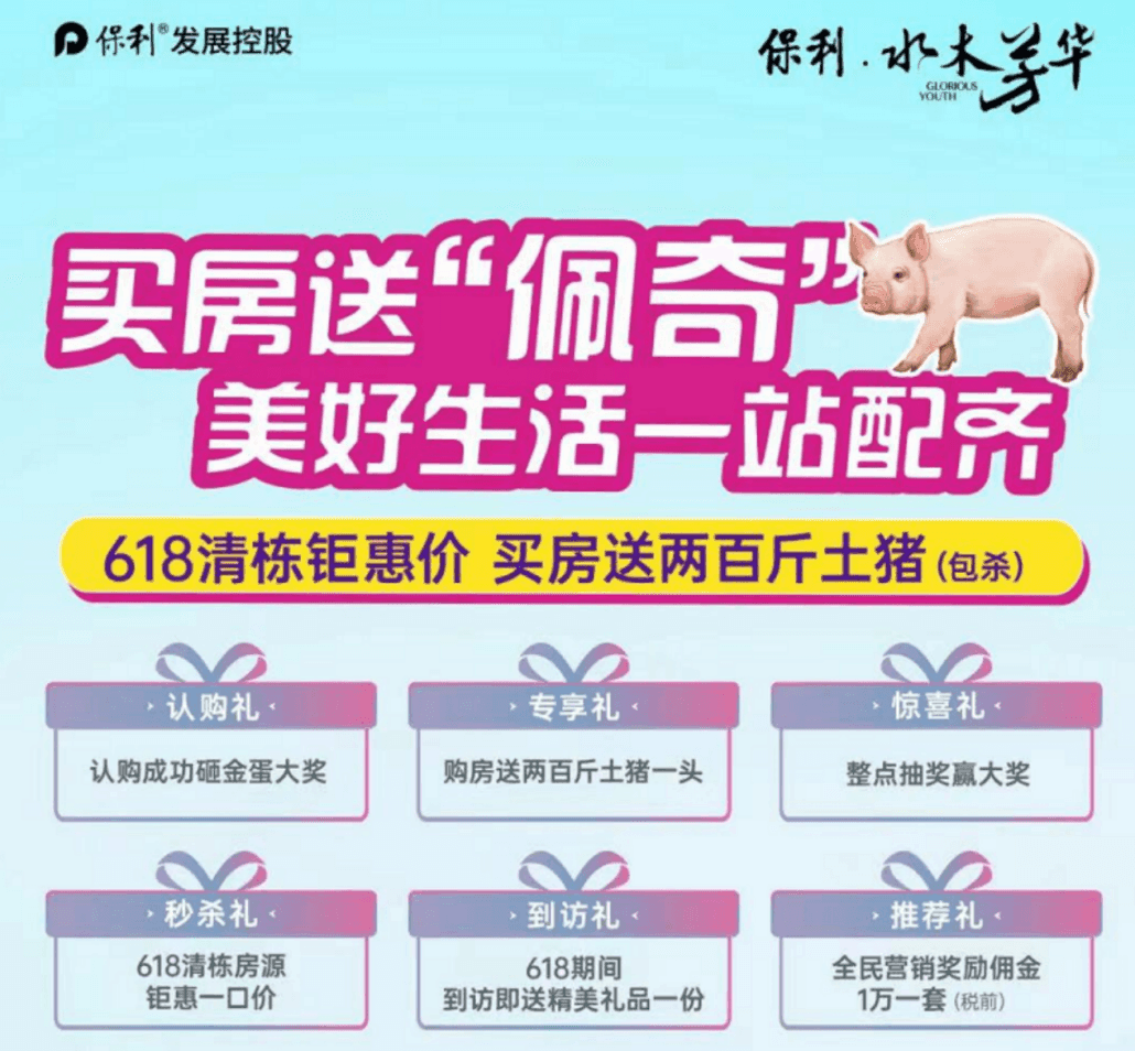 江蘇連云港海州區保利的一個樓盤推出活動,買房送一只 200 斤的土豬,還包殺。