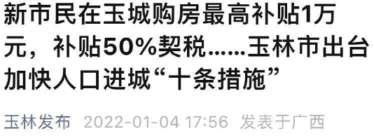 城鎮化是驅動經濟增長的重要方式,農民進城,可以增加勞動力供給,促進消費,提升城市用地規模。所以,相較于一些城市的花樣救市,玉林的政策,不僅僅是在給樓市去庫存。《十條措施》中,既為新市民購房提供了豐富的優惠補貼,購買90平方米(含)以下首套新建商品住房,每套補貼6000元,財政補貼50%契稅等等;同時,優先向進城購房且未就業的新市民推薦3個以上就業崗位,崗位薪酬不低于玉林最低工資標準,可享受一次免費的就業技能培訓。安排義務教育階段學位。進城購房的新市民其適齡隨遷子女屬于起始年級的,可憑不動產證按照相對就近原則統籌安排到城區公辦義務教育學校就讀。