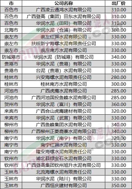 數據來源水泥人網信息中心人工采集,僅供參考如與實際成交價格不符,請以實際成交為準。