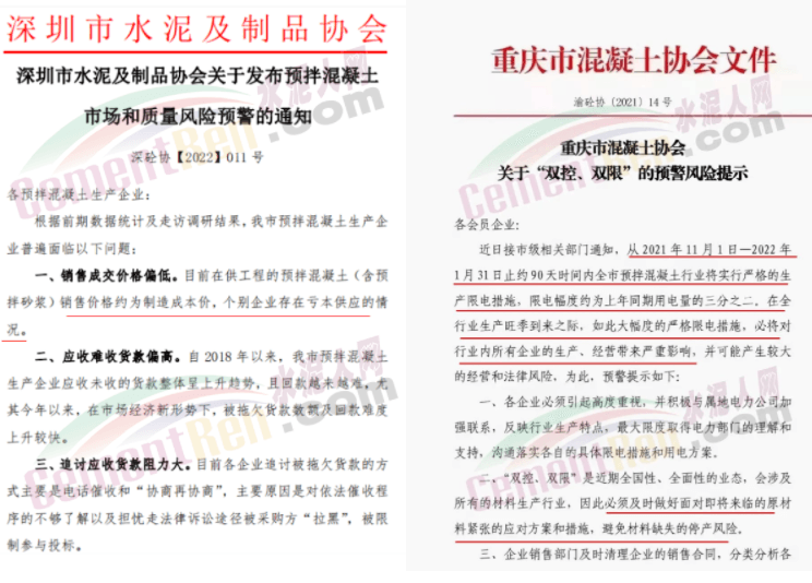 陜西水泥企業達成被實施的壟斷協議,一度引來下游22家商混企業聯名向市長呈情。四川區域的水泥企業達成并實施壟斷協議,導致下游商混企業堵門請愿……更多的區域下游商混協會頻發預警通知,建議預拌混凝土企業在保證質量的前提下穩價增量。