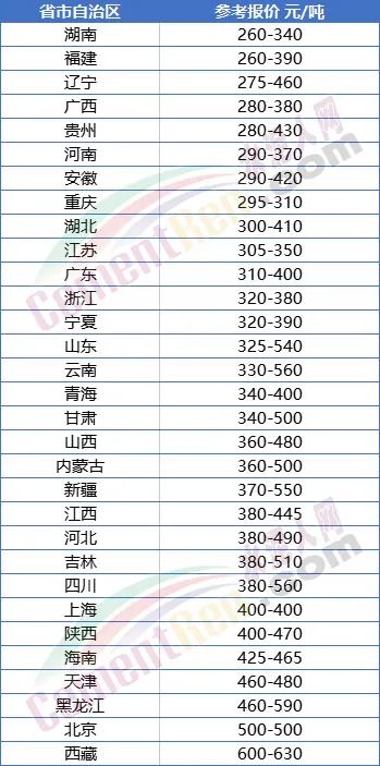 數(shù)據(jù)來源:水泥人網(wǎng)信息中心人工采集,僅供參考,如與實際不符,請以實際成交價格為準。