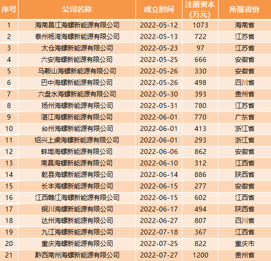 2018年-2021年,海螺新能源獨立出資設立了44家新能源公司。海螺新能源主營業(yè)務包括光伏發(fā)電、風力發(fā)電、儲能系統(tǒng)領域內的技術開發(fā)、技術服務,電力項目的建設、運營和管理等。