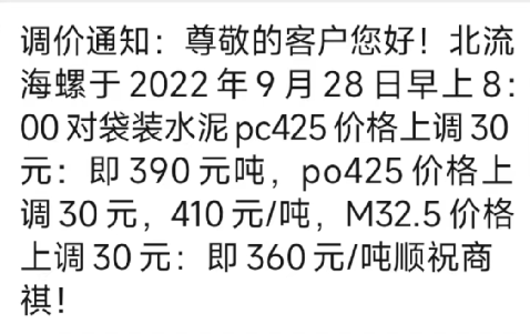 據經銷商反饋,海螺水泥銷售經理及經銷商多在群里或公眾社交媒體上發布調價消息,但是落實到電商系統里的時間與通知時間偶爾也會有出入。