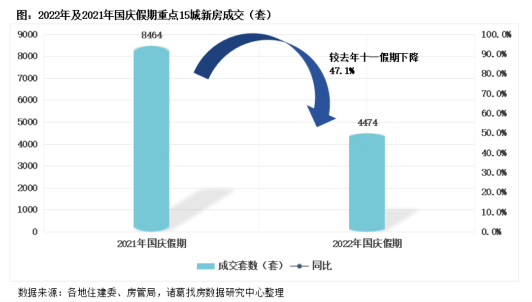 根據相關監測數據,重點15城新房成交4474 套,較去年十一假期下降 47.1%。