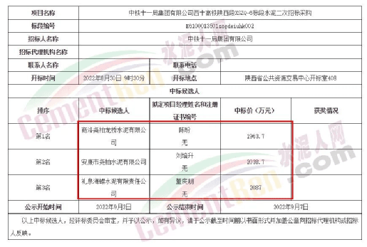 9月初,陜西區(qū)域,中鐵十一局某項(xiàng)目水泥招標(biāo),中標(biāo)候選人包括兩家堯柏水泥和一家海螺水泥。從排序來(lái)看,海螺水泥位于第3名,中標(biāo)價(jià)與兩家堯柏水泥相差123.3萬(wàn)元和48.3萬(wàn)元,而這第3名等同于沒(méi)有中標(biāo)。