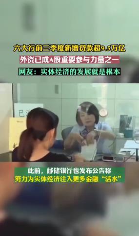 相關數據顯示,工、農、中、建、交、郵儲六大行前三季度新增貸款超9.5萬億。