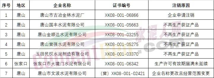 山西省共注銷36家水泥企業生產許可證,其中34家為換發省級下書,一家為有效期屆滿未延續,一家為山西省市場監管局公告注銷;