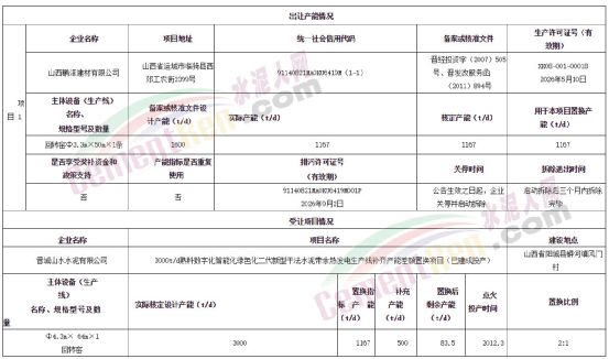 2022年8月15日山西工信廳發布的《鵬澤建材有限公司產能出讓公告》顯示,山西鵬澤建材有限公司出讓1167t/d用于晉城山水水泥有限公司補充產能。