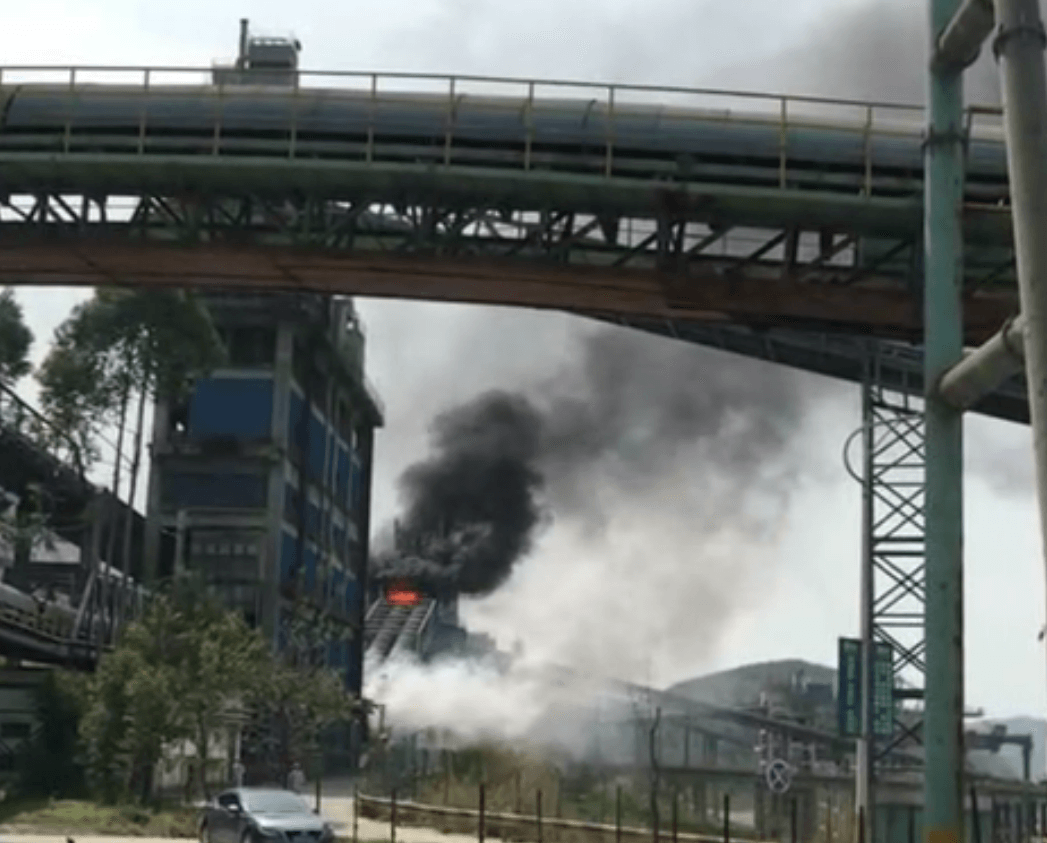 2017年12月30日上午十點五十分左右,四川綿陽某水泥廠輸送帶發(fā)生火險,現(xiàn)場數(shù)十條黑龍并排沖天。事故發(fā)生時一名員工從輸送帶跳下時受傷骨折。