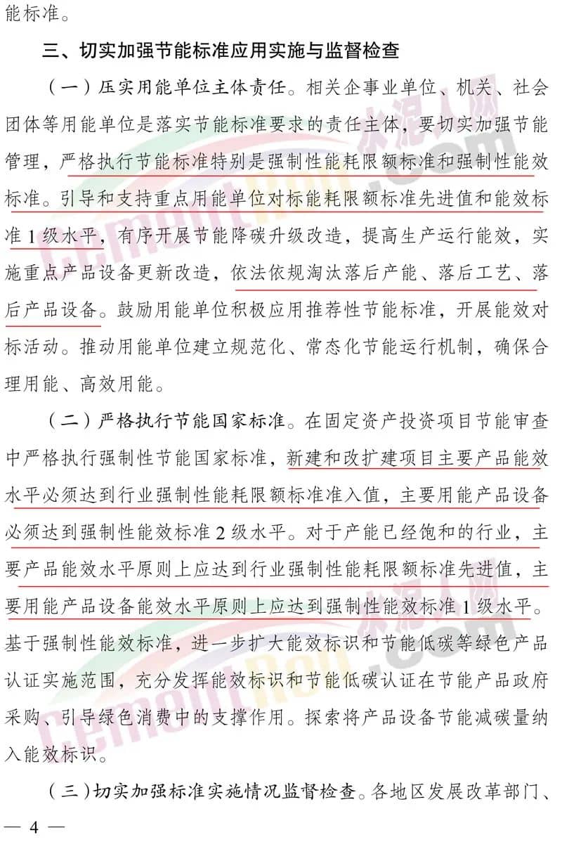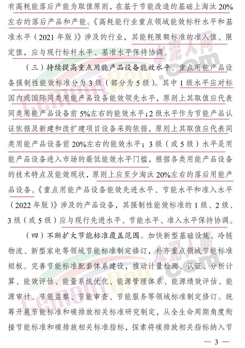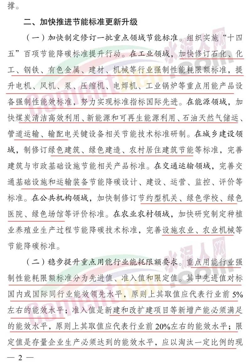 其中提到,截至目前,我國已發布實施強制性能耗限額國家標準112項、強制性能效國家標準75項、推薦性節能國家標準190項,節能標準體系基本建立,對促進技術創新、推動產業升級、加快綠色低碳發展發揮了重要作用。