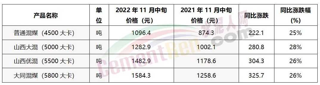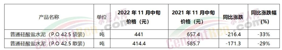 同比2021年11月中旬煤價仍處于高位水泥價格卻處于相對低價。