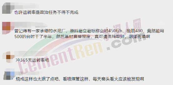 有網友提到承德的一家水泥廠原料磨立磨標稱臺時450t/h,極限480t/h,實際達到500t/h,半年后基材直接報廢,此舉可謂殺雞取卵,涸澤而漁。也有網友表示,“運轉率任務不得不完成”,“沖365天運轉率”;還有網友表示,“看噴煤管這樣,每天窯頭看火應該能發現”。可見,這是企業相關人員明知設備出現問題卻依然堅持帶病運行,以至于噴煤管“帶病延年”。