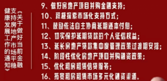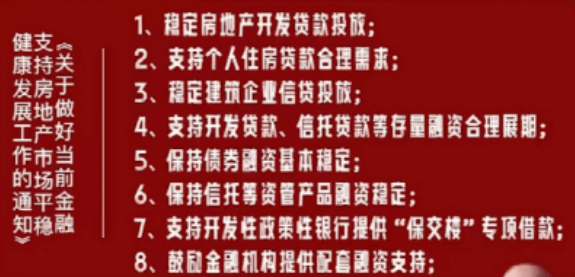 據(jù)了解,“三支箭”系列利好政策還包括:適時適度運用降準等貨幣政策工具,保持流動性合理充裕;人民銀行、銀保監(jiān)會正式發(fā)布16條金融舉措,全面支持樓市平穩(wěn)健康發(fā)展。