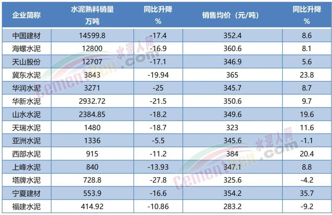 銷售均價方面,14家上市公司中僅3家下跌,其余11家企業均為上漲。其中寧夏建材、冀東水泥、西部水泥、山水水泥等銷售均價漲幅均突破20%。