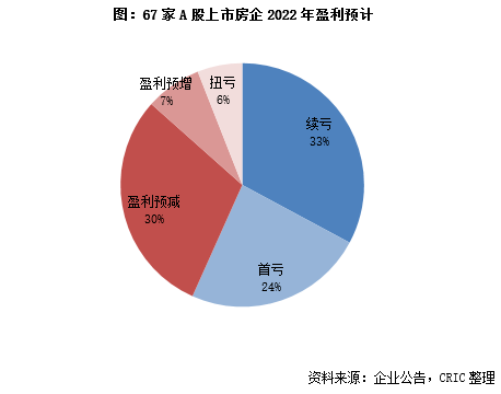 作為水泥行業的下游企業,房地產的興旺直接關系著水泥需求。截至2月14日,A股的113家上市房企中已經有65家發布了2022年度業績預告,此外還有保利發展和華發股份發布了業績快報。從這67家企業的預告來看,A股房企中有38家預計將會虧損,占比超過了56%,其中有22家連續虧損。盈利的29家房企中,則有20家預計歸母凈利潤同比減少,僅有5家預計歸母凈利潤有所增加,此外還有4家企業將扭虧為盈。
