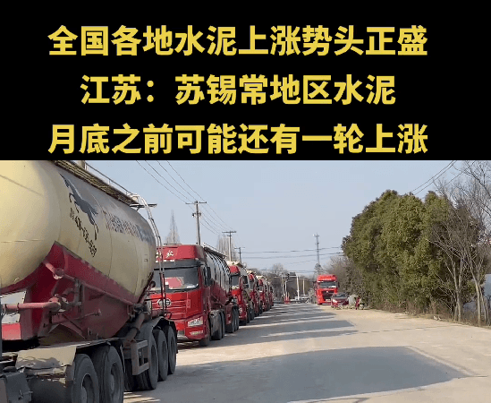 長三角區域經銷商通知稱,全國各地水泥上漲勢頭正盛,江蘇蘇錫常地區水泥月底前還有一輪上漲。