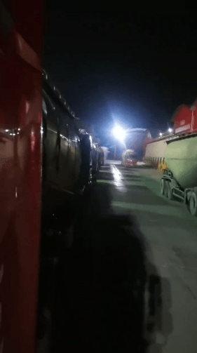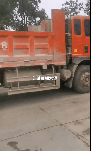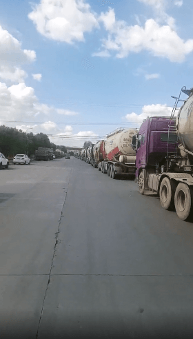 四川江油紅獅水泥廠外水泥車排隊