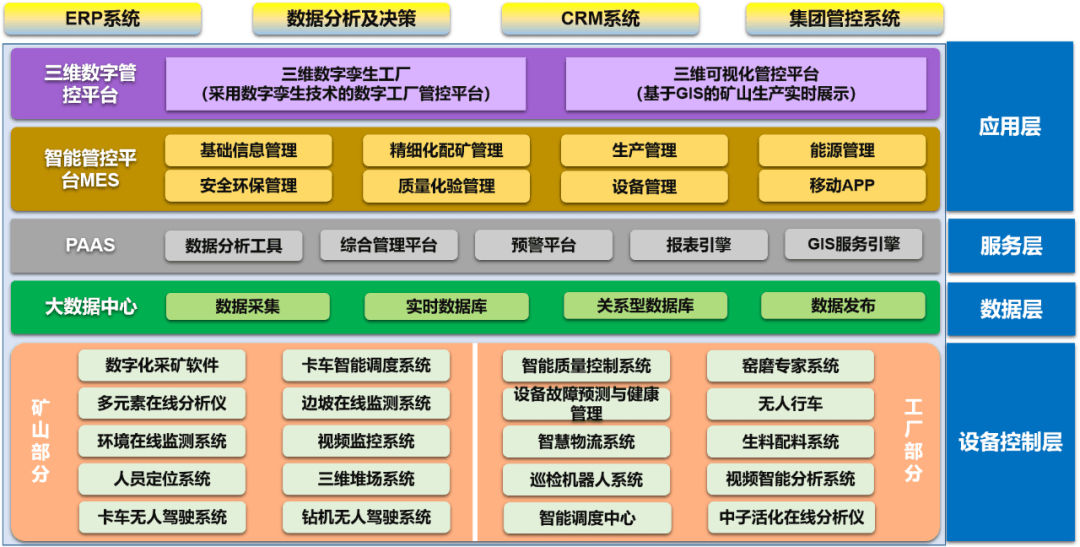 東方測控水泥智能工廠系統(tǒng)集成解決方案是一套全流程整體解決方案。該方案以節(jié)能降耗、精益生產(chǎn)為目標(biāo),建設(shè)石灰石數(shù)字礦山系統(tǒng)、卡車智能調(diào)度系統(tǒng)、水泥生產(chǎn)兩磨一窯智能控制和過程質(zhì)量控制以及智慧物流、設(shè)備故障與健康管理系統(tǒng)、生料配料分析儀、智能質(zhì)量控制系統(tǒng)等系列智能化系統(tǒng),實現(xiàn)生產(chǎn)智能控制。利用數(shù)字化協(xié)同、大數(shù)據(jù)分析技術(shù)實現(xiàn)智能管理,智慧決策。目前水泥智能工廠系統(tǒng)集成解決方案已在海螺水泥、青松建化等大型水泥集團成功應(yīng)用。