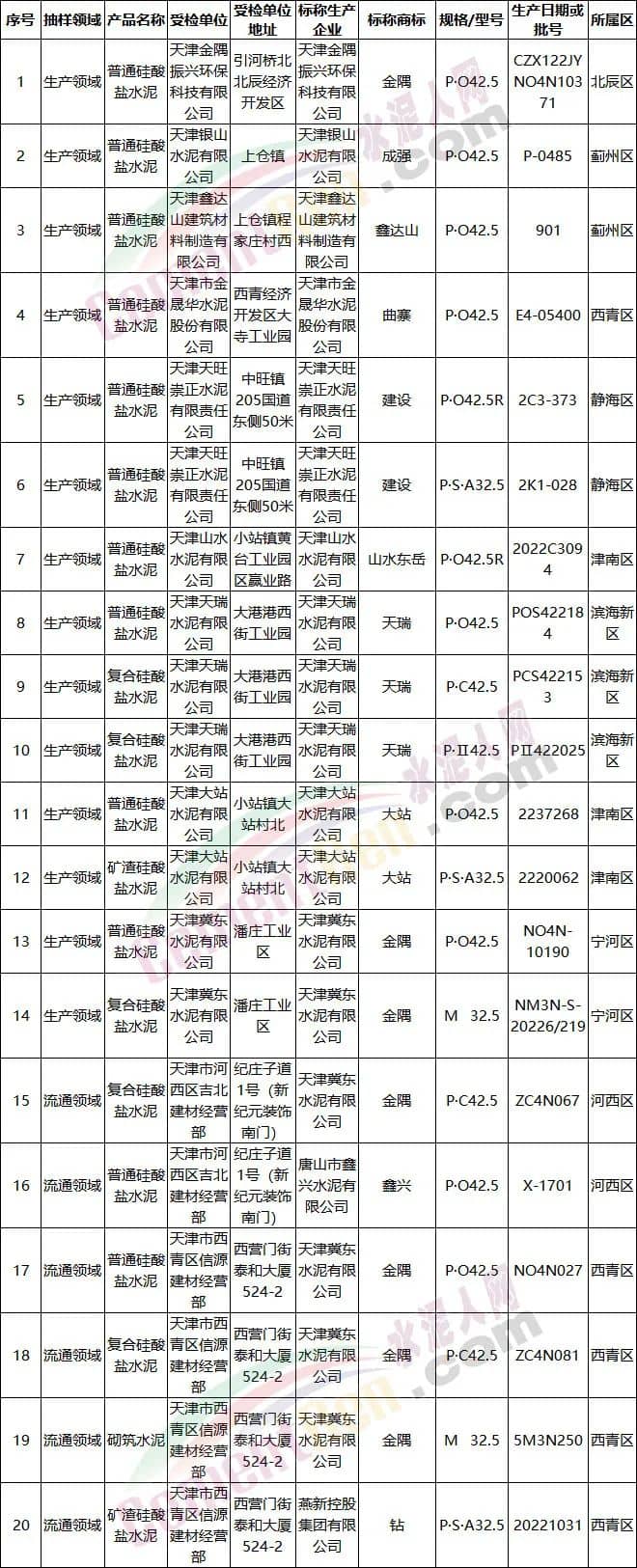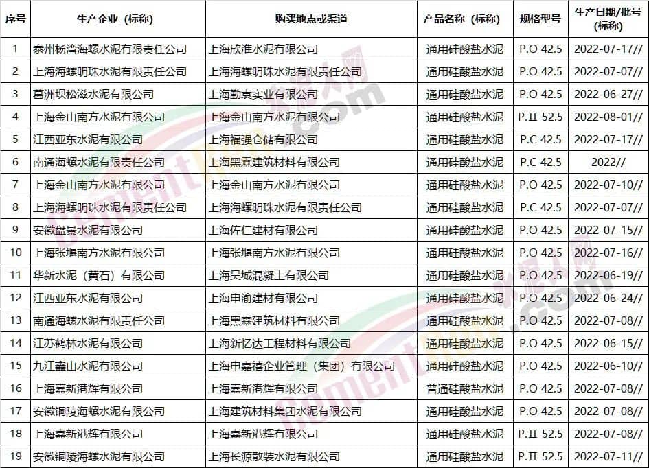 從上述各省市地區公布的抽檢結果可見,抽檢產品多為生產領域企業已檢合格的成品水泥。流通領域抽檢也多為有標稱生產企業的,且擁有相應合格證明的企業。
