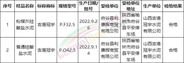 陜西省榆林市府谷縣市場監督管理局抽檢2批次水泥產品,全部合格。