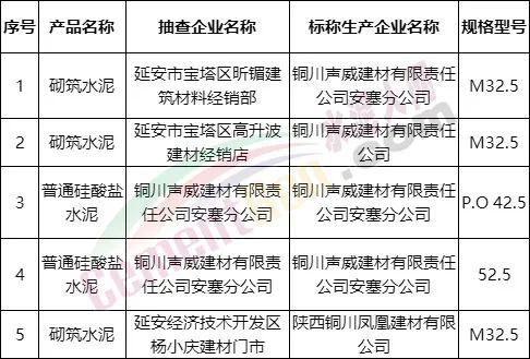 陜西省延安市市場監督管理局對全市建筑裝修裝飾材料等相關商品進行了監督抽查,共抽查5批次水泥,全部合格。