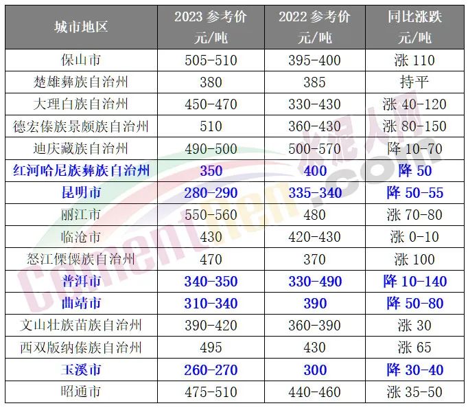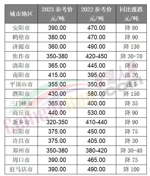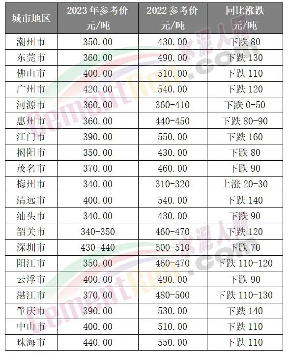 從上述數據可見江門區域2022年3月初報價在550元/噸,目前參考報價還不到400元/噸。梅州市場上年同期報價在310-320元/噸左右,今年3月初報價340元/噸左右,若考慮成本上漲因素,該報價與上年同期仍有差距。