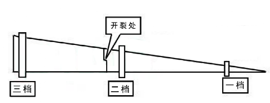 涉案回轉窯中線檢測未發現有大的異常,排除由于中心線不直導致筒體長期三檔受力不均勻出現開裂;