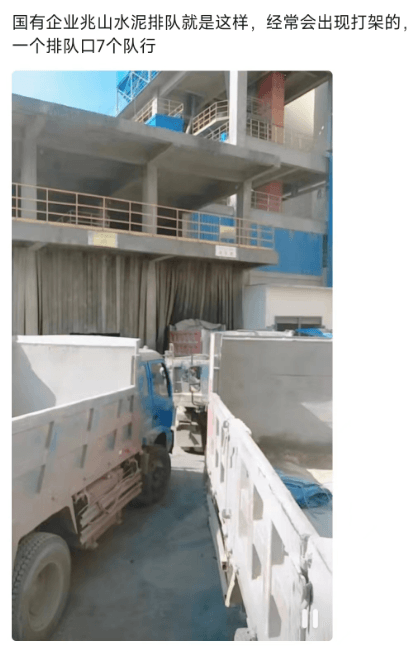 國有企業兆山水泥排隊,經常會出現打架的,一個排隊口7個 隊行……