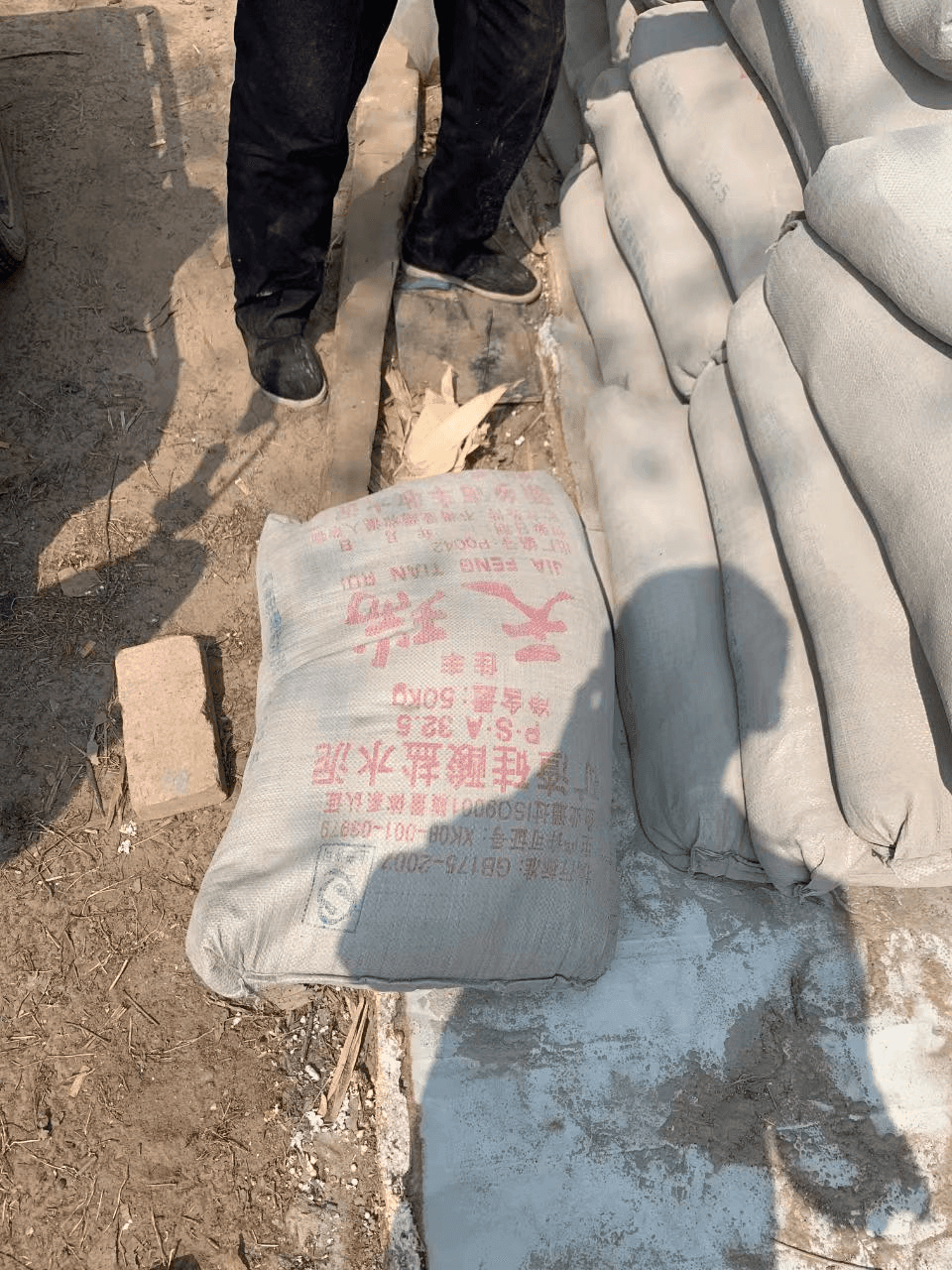 從該消費者提供的現場圖片可見,水泥品牌為“佳豐天瑞”礦渣硅酸鹽水泥P.S.A32.5,標稱生產企業為新鄉市豐收水泥廠,生產許可證號XK08-001-03979。