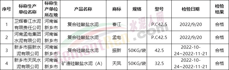 近期新鄉市公布的2022年市抽產品質量監督抽查結果顯示水泥行業生產領域共抽檢32批次水泥及20批次水泥包裝袋全部合格,其中也包括2022年4月26日抽檢的新鄉市豐收水泥廠生產的一個批次“佳豐”牌礦渣硅酸鹽水泥P.SA 32.5,抽檢結果為合格。(相關鏈接:通告:河南新鄉32批次水泥,20批次包裝袋抽檢結果公布)。