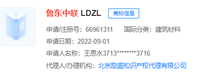 水泥人網注意到,“魯東中聯LDZL ”商標申請人為“王恩水3713***3716”