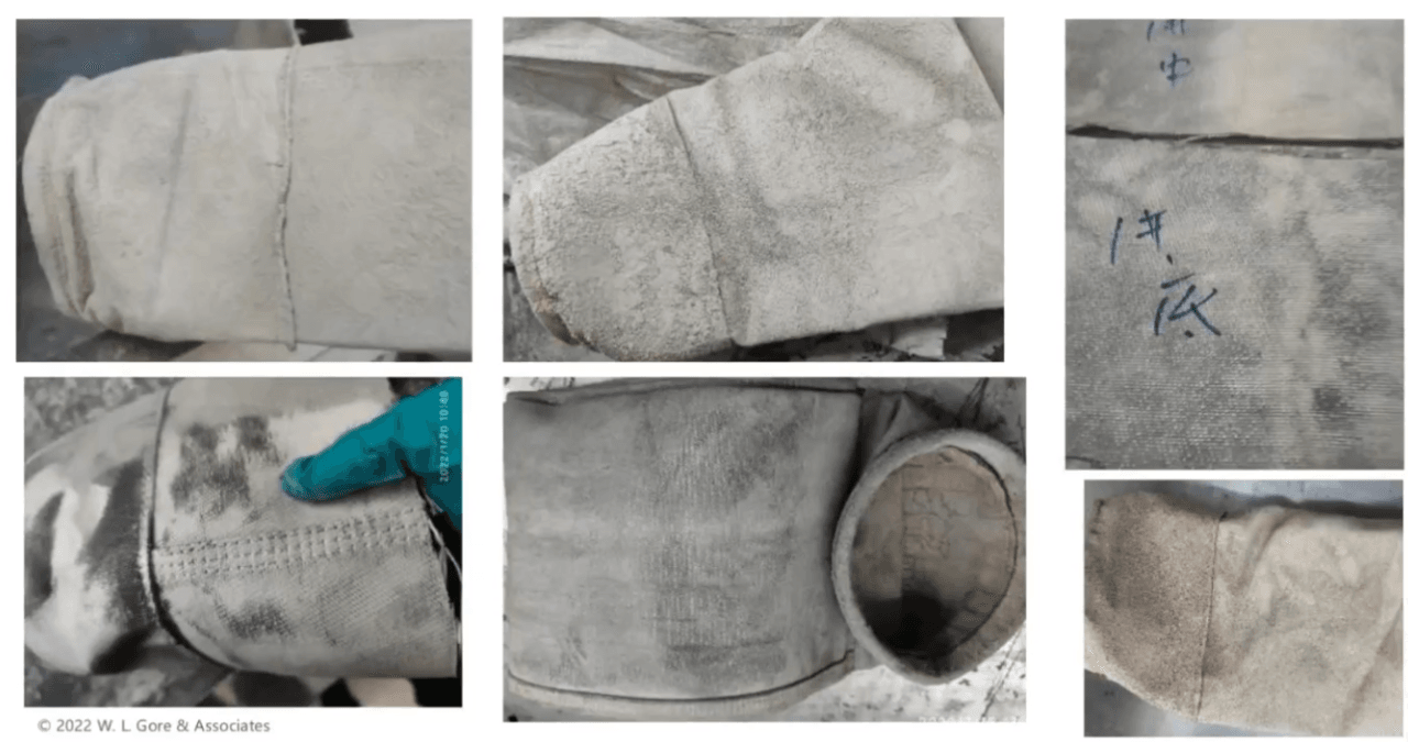 戈爾玻纖覆膜濾袋即使在260度高溫下工作24小時,未出現纖維老化導致濾袋破損,粉塵不達標的情況,且外觀無任何變化。