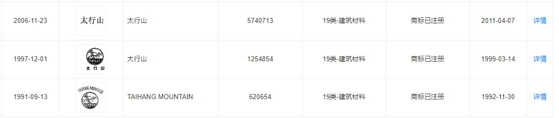 水泥人網注意到,企業旗下與國內知名商標類似的有“昊輝山水、鑫太行”目前狀態為已注冊狀態,“江北山水”商標為無效狀態。