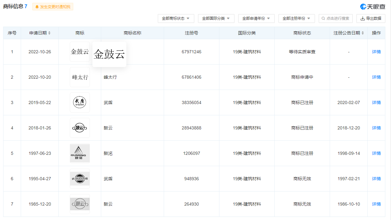 該企業名下共有7條商標信息,其中圖形武盾、鼓云、鼓洺3個商標為已注冊狀態,2022年10月申請的金鼓云商標目前狀態為“等待實質審查”;同期申請的“峰太行”狀態為“商標申請中”;1995年4月27日申請的圖形“武盾”和1985年申請的圖片“鼓云”目前為無效狀態。上圖中標注為“20220921出廠”的產品商標正是1995年4月27日申請的目前為無效狀態的圖形“武盾”。